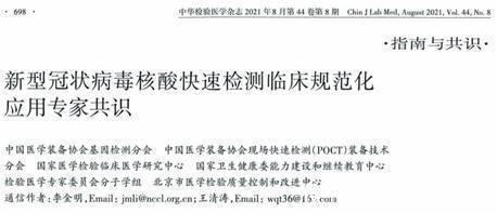 2021年8月中华医学检验杂志发布《新型冠状病毒核酸快速检测临床规范化应用专家共识》。在《共识》中明确了其适用的“新冠核酸快速检测”定义:相对于常规的2019-nCoV新冠核酸快速检测,样本检测全过程所需时间明显缩短,且仪器小型化(部分新冠核酸快速检测系统实现便携式),具有或不具有核酸提取、扩增检测一体化的特点。